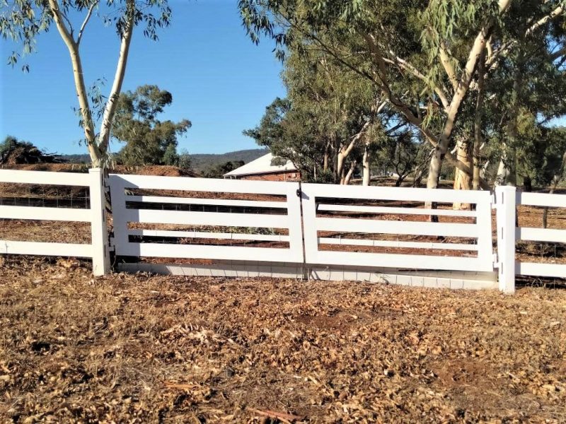 Hamptons style fencing is a very popular design trend, featuring natural timber, or timber look posts in white, grey or pale blue.